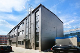 Decentní řešení opláštění haly nabízí velmi příjemná a moderní kombinace bílé šedé a černé. Popřípadě s červeným prvkem taková nová montovaná administrativní hala bude působit elegantně a nadčasově.