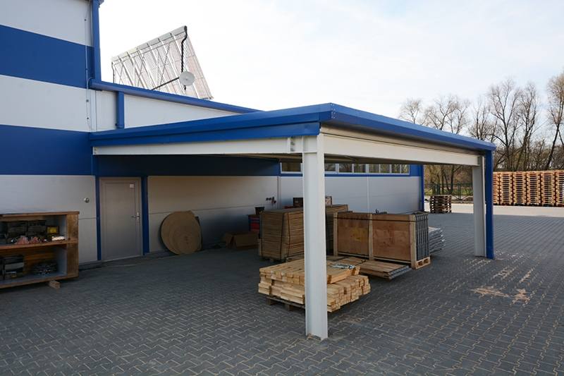 Montovaná hala v rozměrech 10x25x6 je složená z rámové ocelové konstrukce se sedlovou střechou a sklonem 4°. První modul je řešený na dvě patra, jsou zde umístěny kanceláře společnosti. Zadní tři moduly slouží pro výrobní účely společnosti.